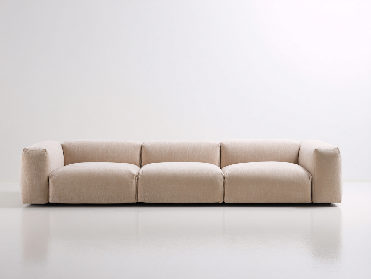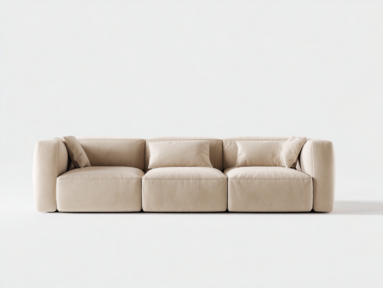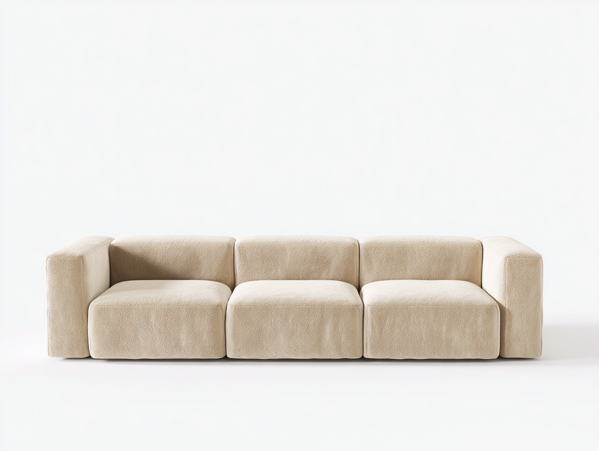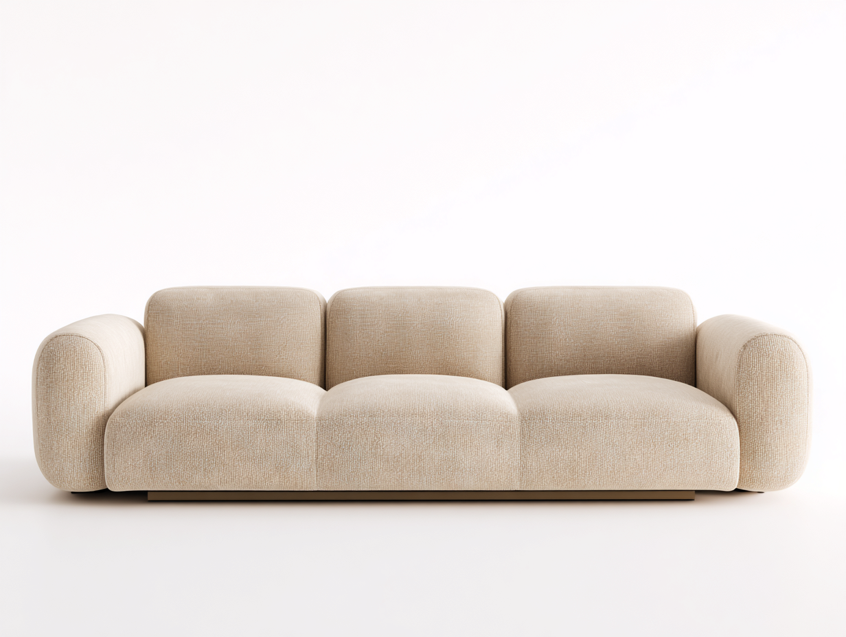 Canapé-3 places-tissu rembourré-210x90x85 cm-beige-design moderne confortable