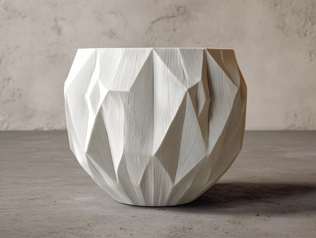 Cache-pot décoratif géométrique facetté - résine 24x24x22 cm - blanc - design moderne sculpté