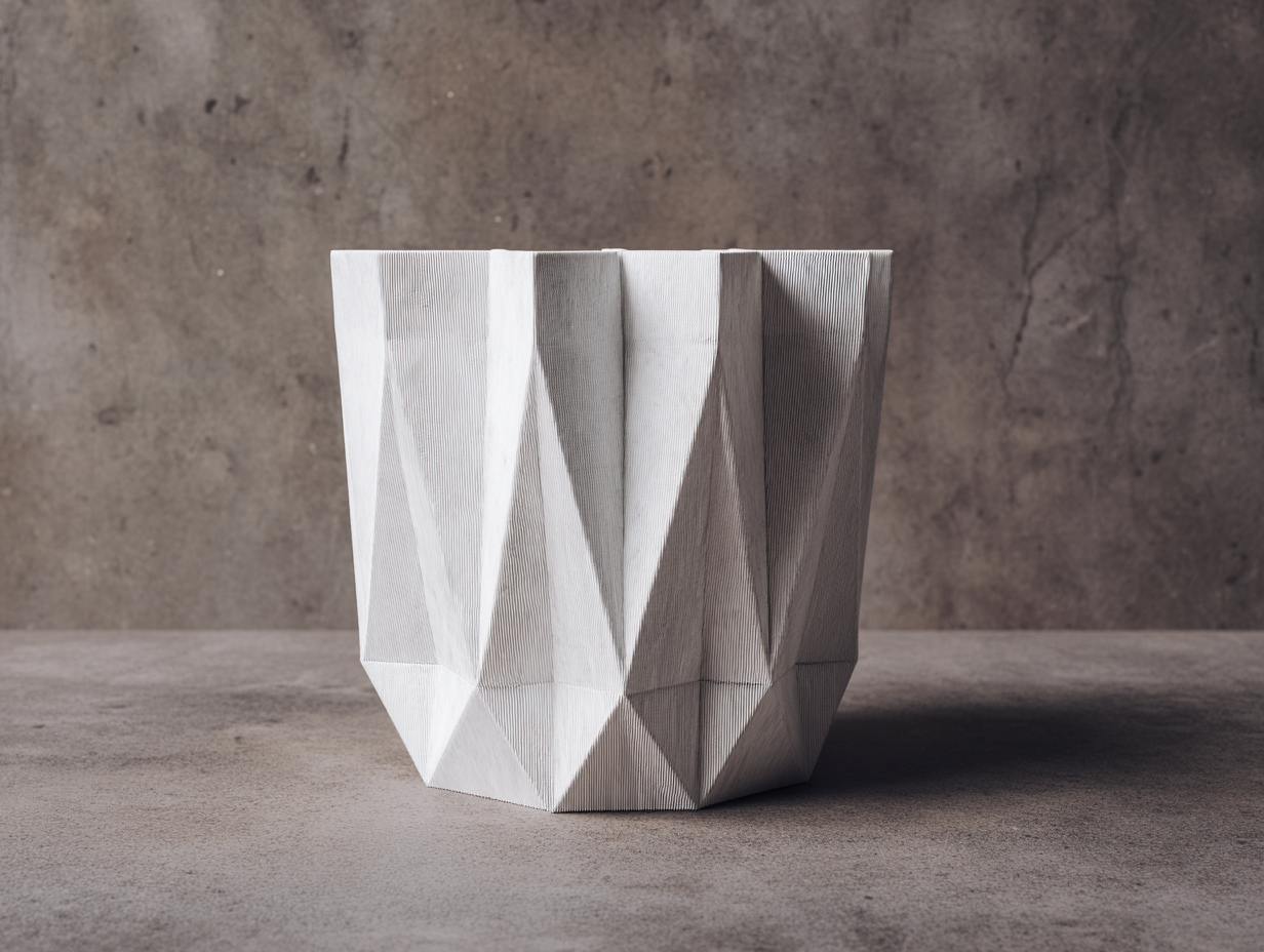 Ce cache-pot décoratif au design géométrique facetté apporte une touche artistique contemporaine à la présentation des plantes. Sa surface sculptée composée de facettes angulaires crée un jeu de reliefs élégant qui attire le regard et met en valeur la décoration végétale dans un salon, un bureau ou une entrée.